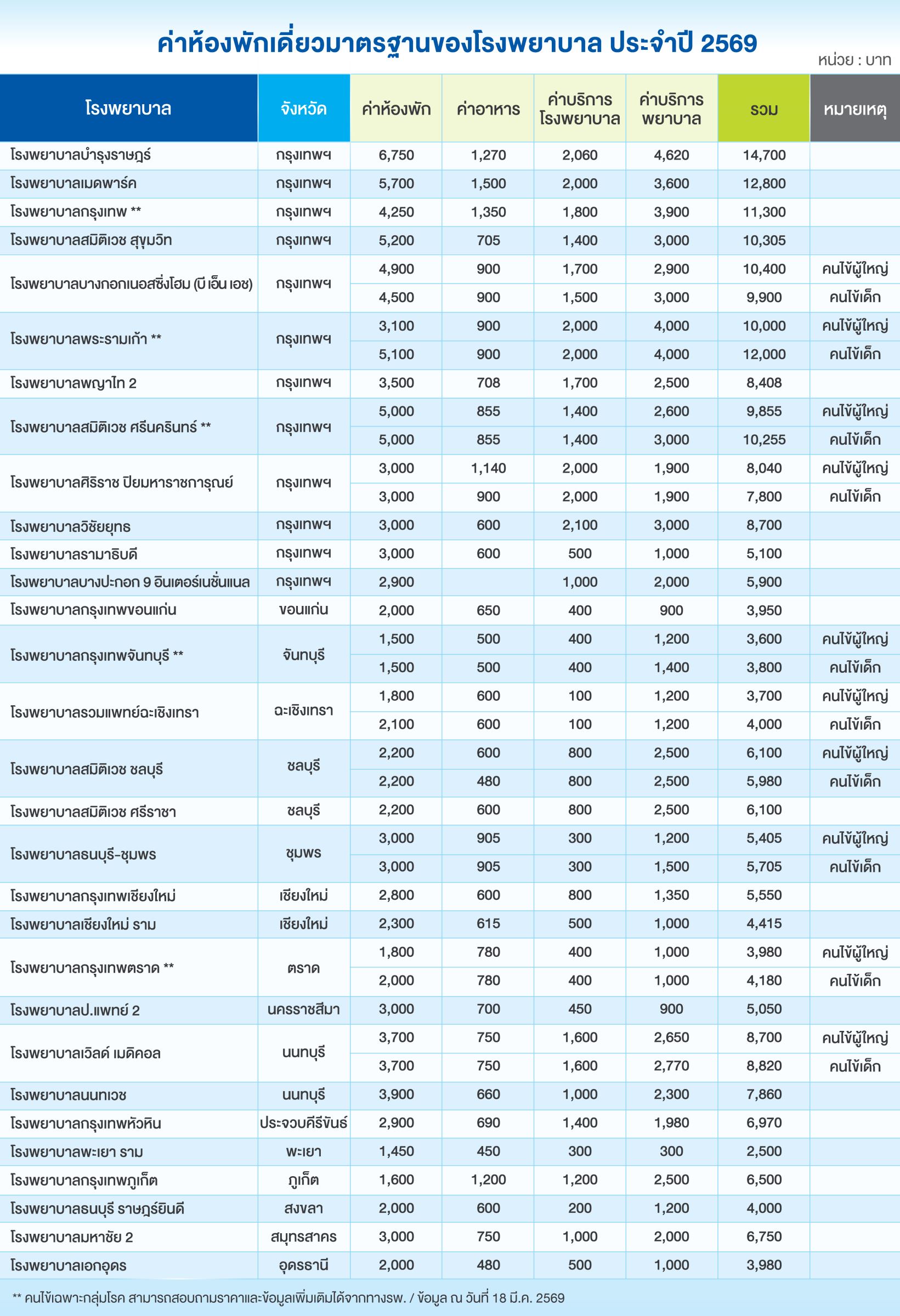 - ค่าห้องเดี่ยวมาตรฐาน หมายถึงค่าห้องพักเดี่ยวระดับเบื้องต้นของโรงพยาบาล