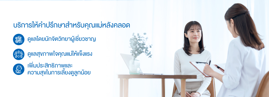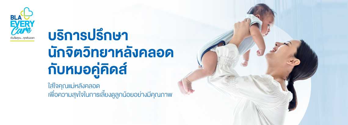 BLA EVERY CARE ใส่ใจคุณแม่หลังคลอด เพื่อความสุขใจในการเลี้ยงดูลูกน้อยอย่างมีคุณภาพ อย่าลังเลที่จะใช้บริการปรึกษานักจิตวิทยาหลังคลอด กับหมอคู่คิดส์ สนใจอ่านรายละเอียดการบริการเพิ่มเติมได้ที่ https://bangkoklife.com/HappyLifeClub/th/EveryCare/After/MaternalWellness