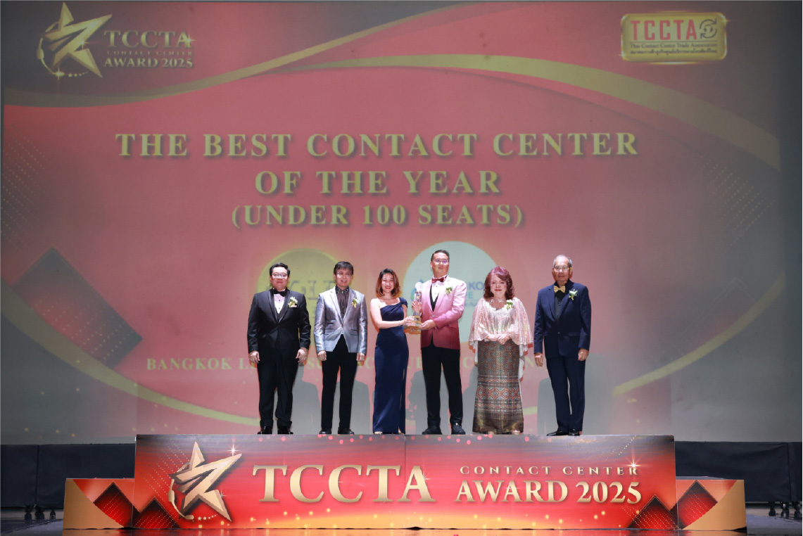 กรุงเทพประกันชีวิต คว้า 5 รางวัล The Best Contact Center of The Year 2025 (Under 100 Seats) จากงาน TCCTA Contact Center Awards 2025 จัดโดยสมาคมการค้าธุรกิจศูนย์บริการทางโทรศัพท์ไทย (TCCTA: Thai Contact Center Trade Association) ตอกย้ำการก้าวสู่แบรนด์อันดับหนึ่ง ในด้านความ “ใส่ใจ” ทั้งในการบริการและการดูแลลูกค้า พร้อมมุ่งมั่นยกระดับการให้บริการคอนแทคเซ็นเตอร์ในมาตรฐานสากล และเป็นต้นแบบในการพัฒนาธุรกิจ ณ โรงละครอักษรา กรุงเทพมหานคร