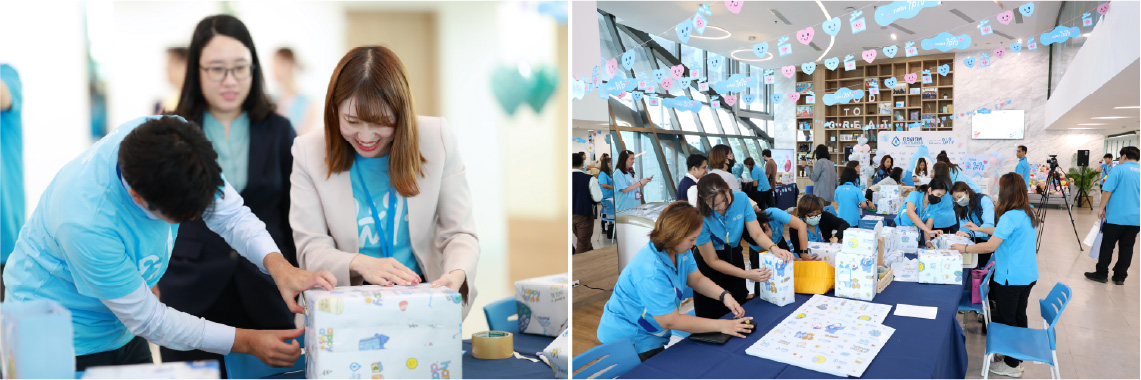 ภายใต้นิยามความสุขของคนเราที่ไม่เหมือนกัน หลายคนอาจตั้งความสุขไว้ที่ความมั่งคั่ง ความสำเร็จในหน้าที่การงาน ความรัก ขณะที่ความสุขของอีกหลายคนเป็นสิ่งเรียบง่าย เป็นความสุขเล็กๆ แต่อิ่มเอมใจ ณ ลานกิจกรรม บริษัท กรุงเทพประกันชีวิต จำกัด (มหาชน) สำนักงานใหญ่ “โชน โสภณพนิช” กรรมการผู้จัดการใหญ่และประธานเจ้าหน้าที่บริหาร พร้อมด้วยผู้บริหารระดับสูง พนักงาน 250 คน รวมทั้งตัวแทนประกันชีวิตและที่ปรึกษาการเงิน ได้ร่วมส่งต่อความอบอุ่นใจให้กับเด็กๆ ผู้ด้อยโอกาส ผ่านกิจกรรม “กล่องใส่ใจ” โดยนำตุ๊กตา หรือ ของเล่นใหม่หรือที่อยู่ในสภาพดี มาร่วมห่อของขวัญ บรรจุเป็น “กล่องใส่ใจ” ซึ่งสามารถรวบรวมได้จำนวน 280 กล่อง พร้อมนำไปมอบให้แก่น้องๆ มูลนิธิบ้านนกขมิ้นทั้ง 3 สาขา ประกอบด้วย สาขากรุงเทพมหานคร สาขาสุโขทัย และสาขาเชียงใหม่