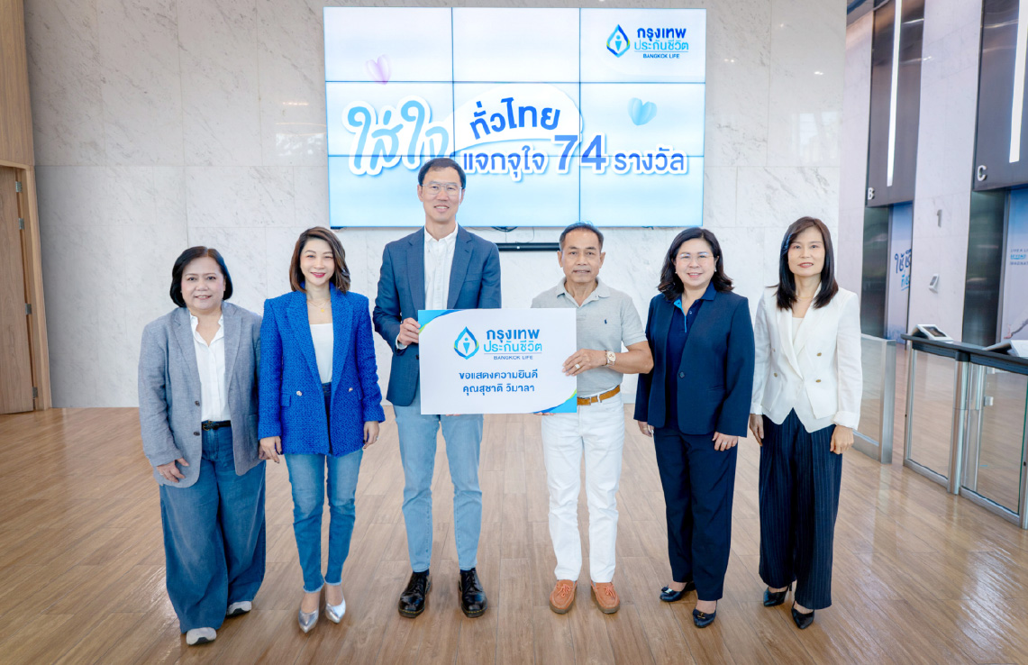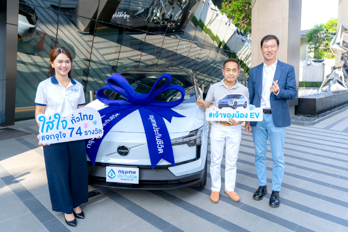 กรุงเทพประกันชีวิต เดินหน้าสร้างประสบการณ์การตลาดที่แตกต่าง เนื่องในโอกาสฉลองครบรอบ 74 ปี ด้วยการจัดแคมเปญ “ใส่ใจทั่วไทย แจกจุใจ 74 รางวัล” มอบรางวัลใหญ่ รถยนต์ไฟฟ้า Volvo รุ่น EX30 Ultra - Twin Motor Performance สี Cloud Blue พร้อมอุปกรณ์ชาร์จไฟ จำนวน 1 รางวัล รวมมูลค่า 1,540,000 บาท ให้แก่ผู้โชคดี นายสุชาติ วิมาลา เพื่อสะท้อนแนวคิดการเติบโตอย่างยั่งยืน พร้อมตอกย้ำภาพลักษณ์การเป็นบริษัทประกันชีวิตอันดับหนึ่งในด้านความใส่ใจ โดยมี นายโชน โสภณพนิช กรรมการผู้จัดการใหญ่และประธานเจ้าหน้าที่บริหาร นางสาวอรนาฎ นชะพงษ์ ผู้ช่วยผู้จัดการใหญ่ สายกลยุทธ์การตลาดและบริหารจัดการลูกค้า นางลัดดาวัลย์ สิทธิวรนันท์ ผู้ช่วยผู้จัดการใหญ่ สายช่องทางสถาบันการเงินและพันธมิตรทางธุรกิจ พร้อมคณะผู้บริหารจากธนาคารกรุงเทพ ร่วมแสดงความยินดี ณ บริษัท กรุงเทพประกันชีวิต จำกัด (มหาชน) สำนักงานใหญ่
